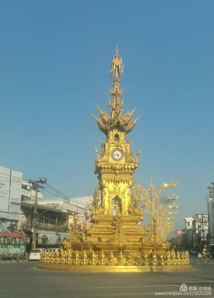 走在清莱市中心的主路上,你很难不注意到这座钟塔。这座金碧辉煌的钟塔无疑是清莱最醒目的地标。这座古风十足的钟塔其实是2009年才建成的。到了晚上七点,这里还会上演声光秀,整座钟塔都会随着音乐的高低起伏而变化颜色。
