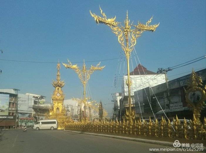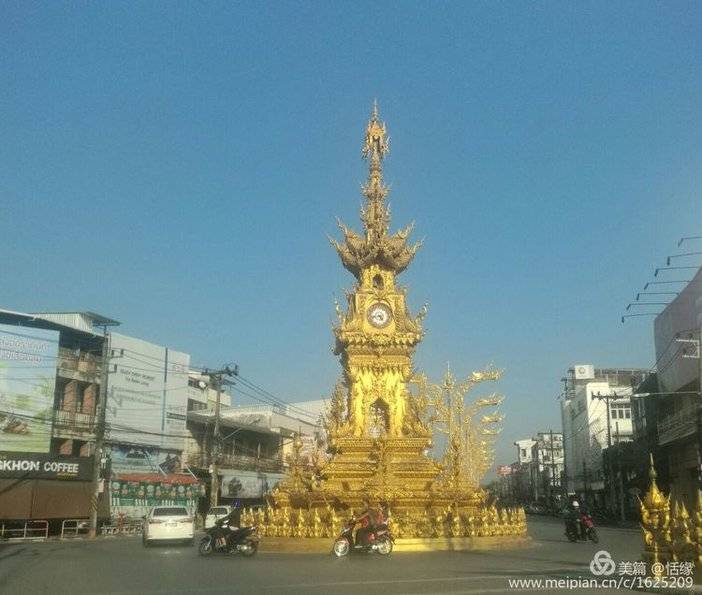 荣誉钟塔就在清莱汽车站附近的一个十字路口,也是白庙设计师的作品,献给国王的礼物。富丽堂皇,很漂亮。