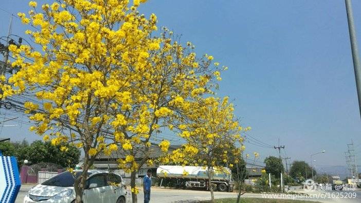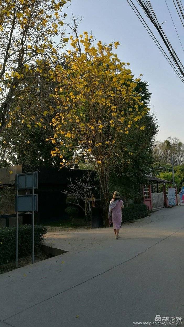 大概四点多我们出发,沿途的黄金风玲木挂满金玲开的正旺。