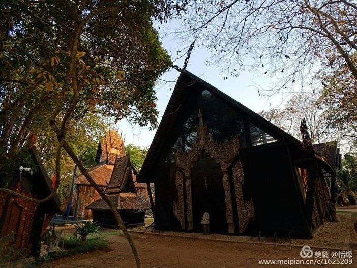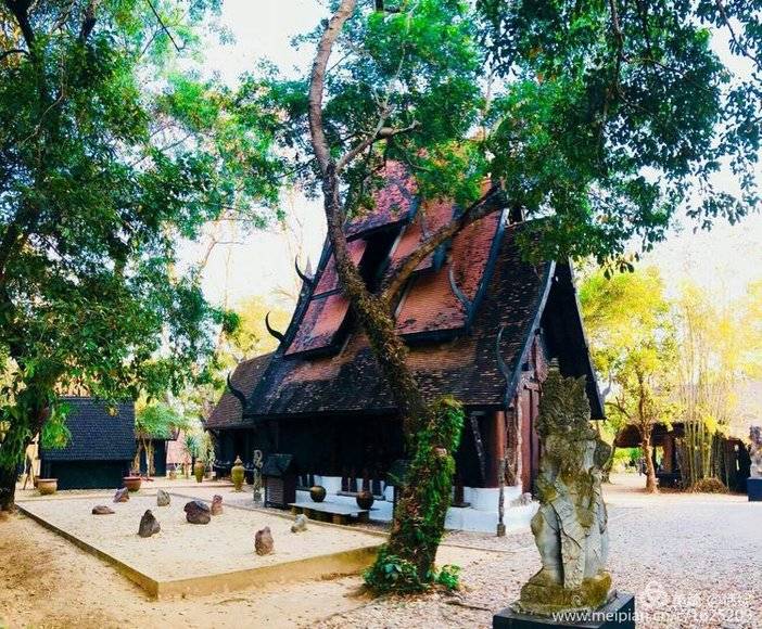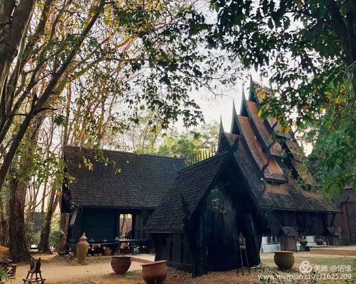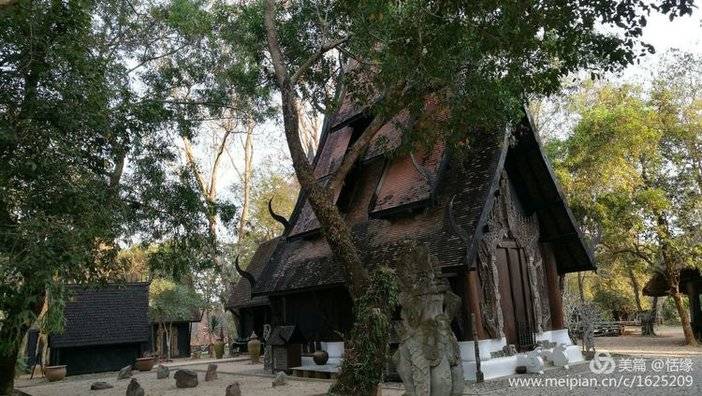 黑庙其实是由一位当地艺术家Thawan Duchanee设计建造的黑屋博物馆,位于泰缅老交界地带,其中放置了许多他收藏的珍贵古董,以及许多牛角、头骨、蟒蛇皮等标本,气氛压抑。人们常常将其与白庙一起提起,白庙为“天堂”,黑庙为“地狱”。