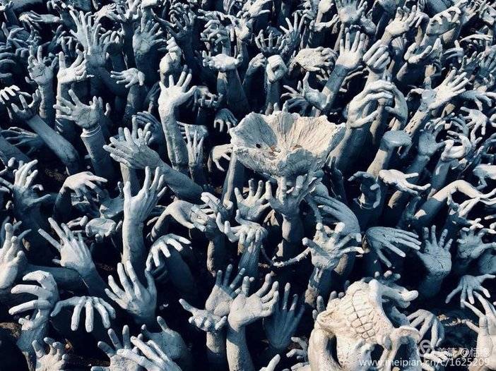 走到大殿需要走过一段长桥,最先看到的是从“地狱”中探出的无数双“狰狞”的双手,逼真得仿佛要从地下蹿出。