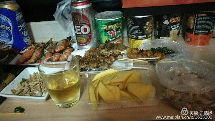回程途中我们顺便逛了当地市场,真是应有尽有,什么都稀奇什么都想尝尝。于是我们决定今晚改变方式不找饭店了,就在这儿采购回宾馆会餐。于是芒果糯米饭,竹筒红糖糯米饭,烤大虾,烤肉串,猪肘子,啤酒等等采购了一批。