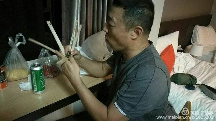 看,谷子哥的竹筒红糖糯米饭已见底了。