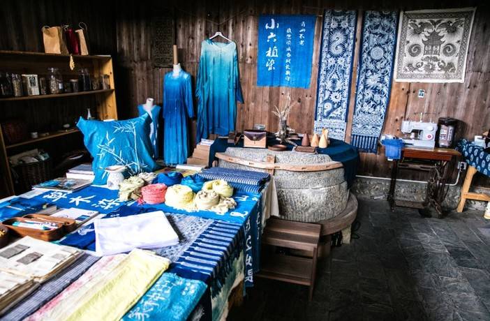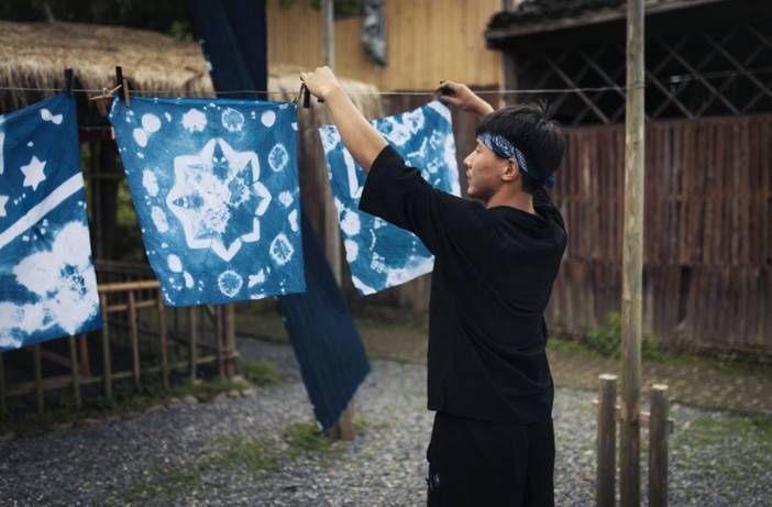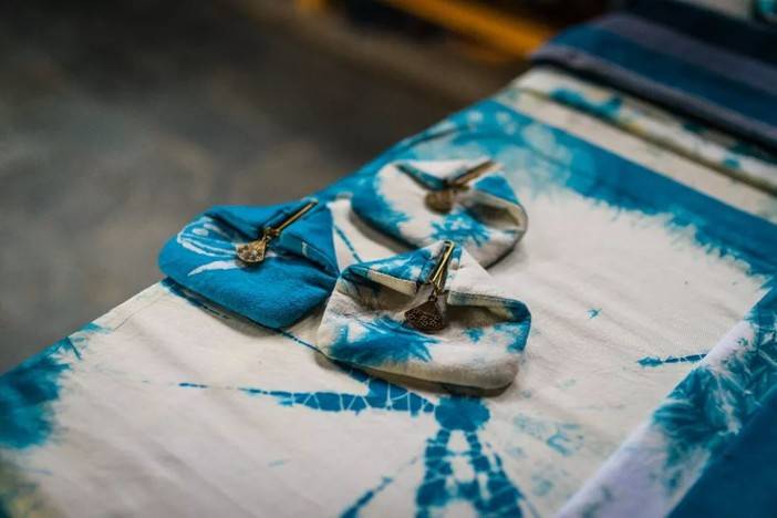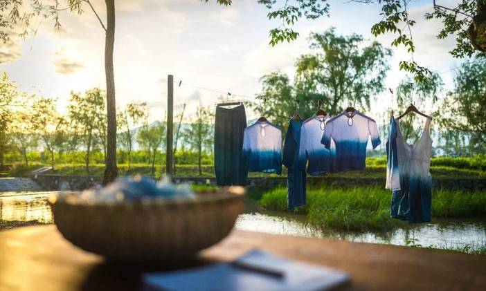 这种蓝色的染布,因为氧化过程,温度,浸染时间等因素而变幻无穷,带来不可预测、独一无二的美。取之于自然又归于自然的蓝染,淳朴平和虚实深浅的落色,让世界惊艳。