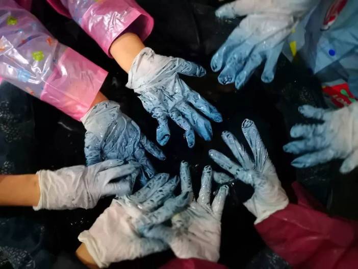 发酵成功的染液并不是一劳永逸的,要精心的呵护养育,每天需要观察它的发酵程度及酸碱度,根据情况喂食蓝靛泥或糖或米酒,天气冷的时候还要注意保暖。只有日复一日精心料理,蓝靛花才会开的越来越好,染出层次丰富,素雅凝重的蓝。
