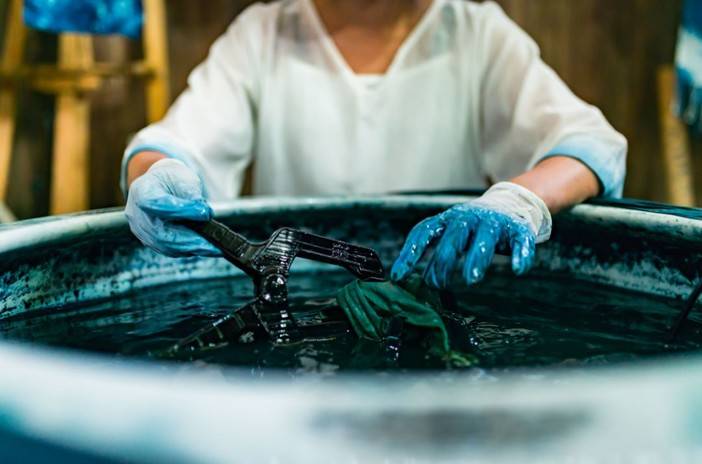 把制作好的染品放入染缸浸泡染色;